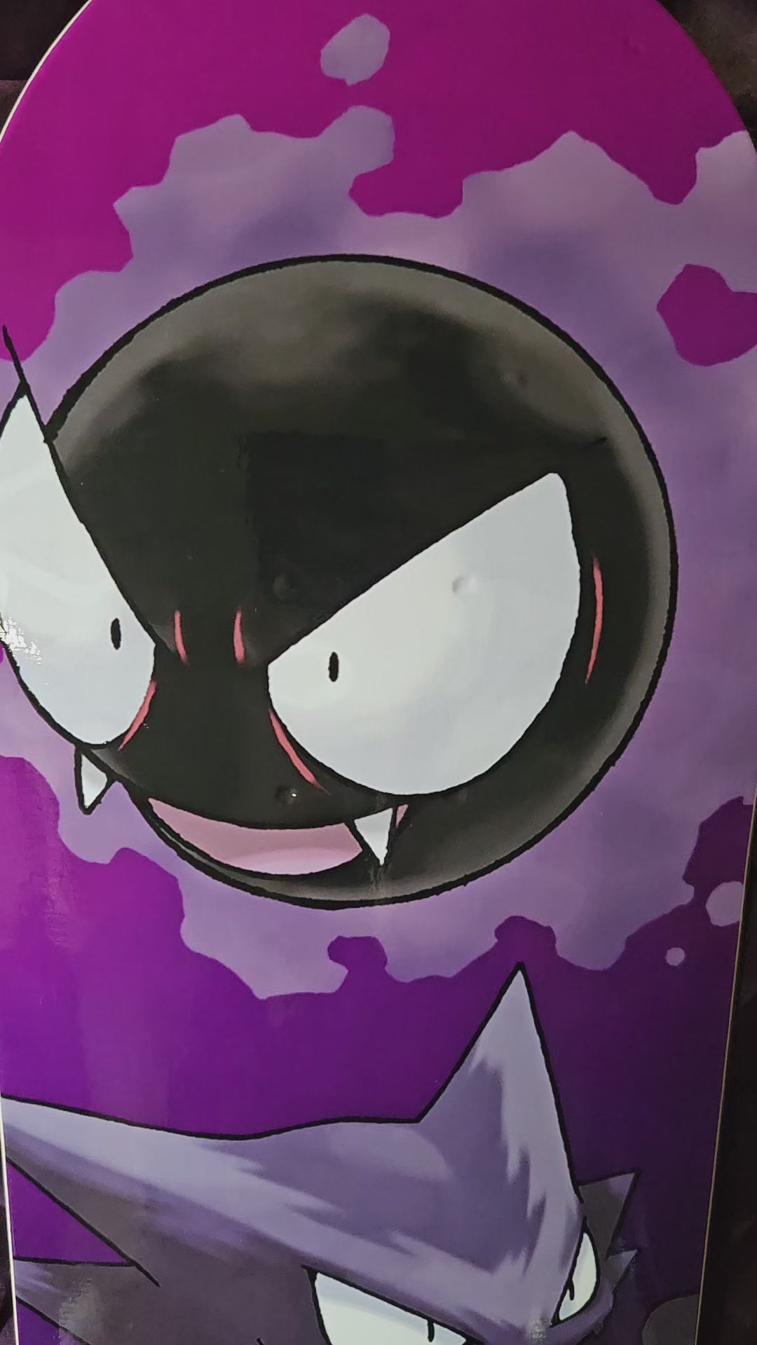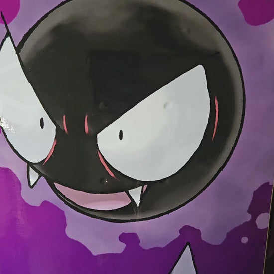 This skateboard deck features the ghost type pokemon Gastly, Haunter, Gengar, perfect for any enthusiast or skateboard collector. Made with high-quality materials, this deck is durable and built to last.